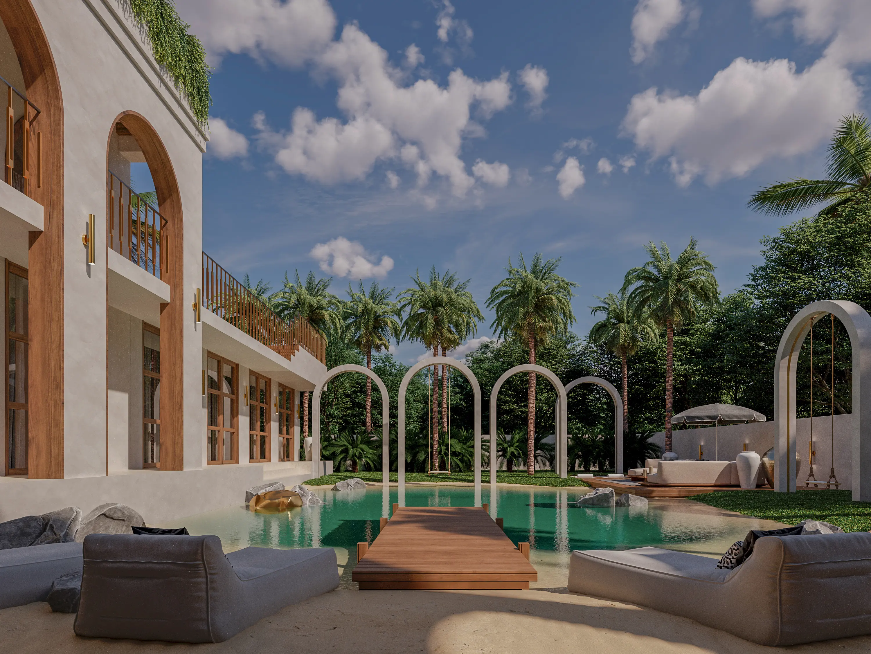 Los Arcos is defined by rhythm, proportion and the quiet power of form. Inspired by classical Mediterranean arches and reinterpreted through the warmth of the Riviera Maya, the residence translates geometry into lived experience rather than ornament.